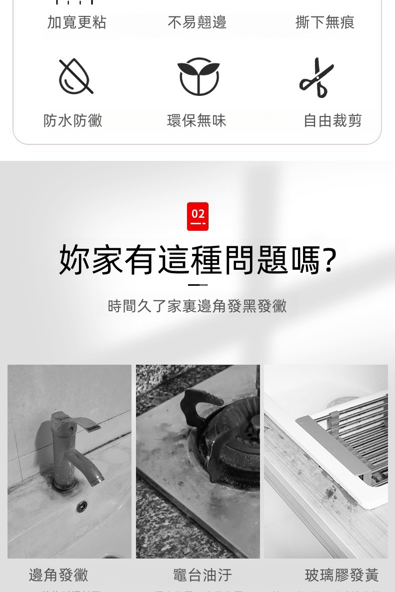 2分鐘前限時搶購 美縫貼防水防霉廚房水槽洗碗灶台封邊擋水條,衛生間馬桶邊緣縫隙貼 - 【嘗鮮價】3入組-NT$980