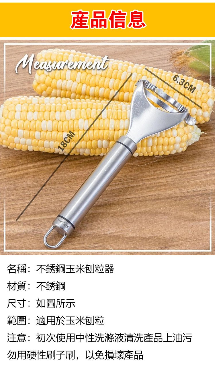 4分鐘前火爆熱賣 不銹鋼玉米刨粒器 鋒利鋸齒,剝落乾淨,絕不浪費 剝玉米,胡蘿蔔皮 土豆皮,304不鏽鋼材質,易於清洗 - 【狂殺特賣】9入組-NT$1380